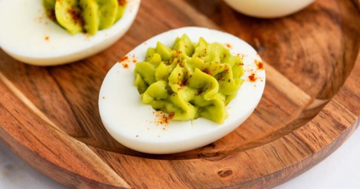 These creamy deviled eggs skip the mayo and use lighter ingredients instead, keeping them fresh and crowd-friendly.