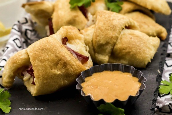 These buttery crescent-roll pockets wrap up classic Reuben fillings like corned beef, Swiss cheese, sauerkraut, and a little Thousand Island dressing for a fun handheld twist.